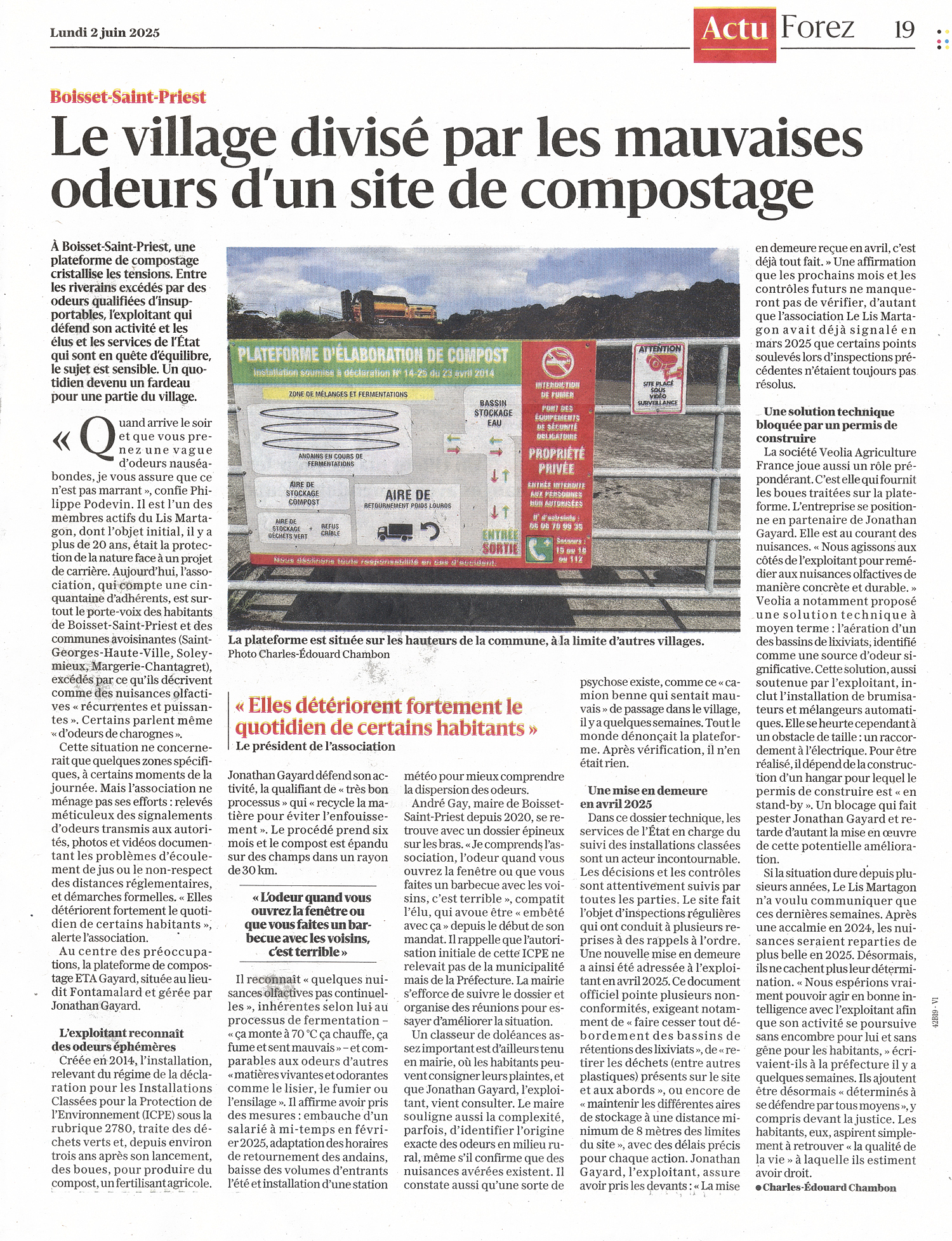 Petite mise au point après l‘article de la Tribune du 2 juin 2025 « le village divisé par les mauvaises odeurs d’un site de compostage »