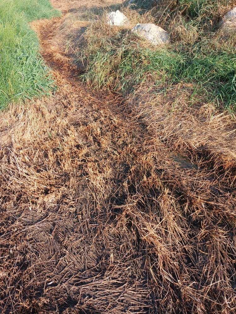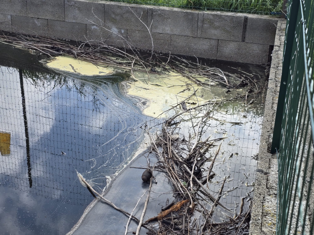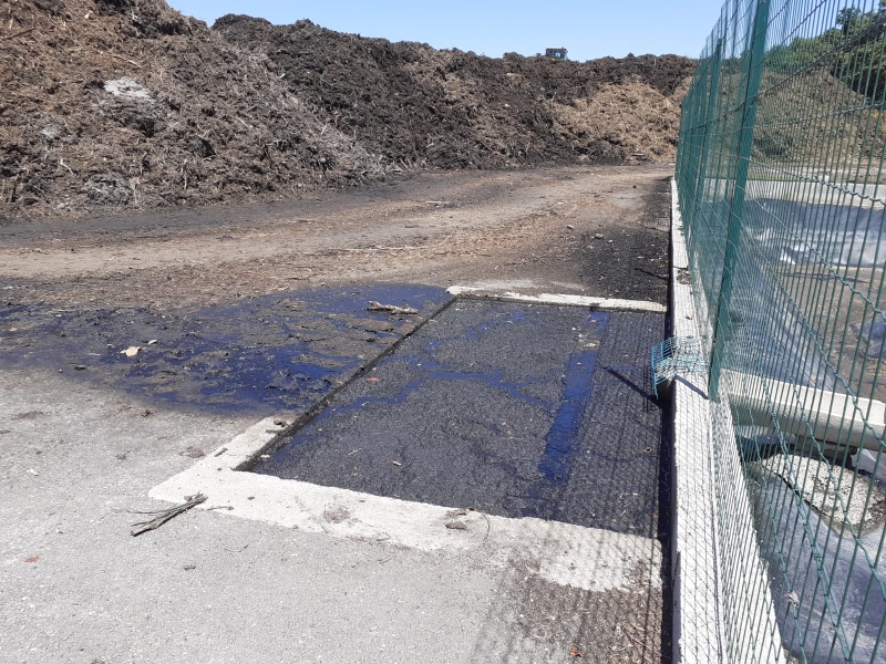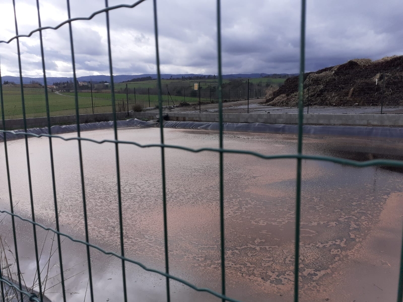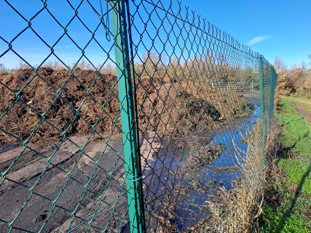 Ecoulement bassin août 2024Les andains doivent se trouver à 8m de la clôtureAndains en limite de clotureDébordement des bassinsAndains trop proches de la clôture et écoulements hors limites de plateforme.